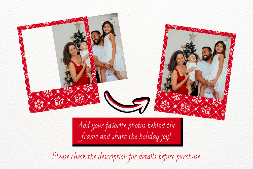 Capture your holiday memories with this festive set of Polaroid-style Christmas photo frames, decorated with elegant snowflakes. These frames are perfect for holiday scrapbooking, Instagram posts, printable crafts, Christmas cards, party invitations, digital planners, and cozy seasonal designs.