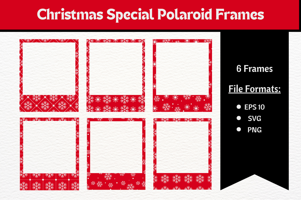 6 Christmas Polaroid Photo Frames – Includes EPS10, SVG & PNG Files